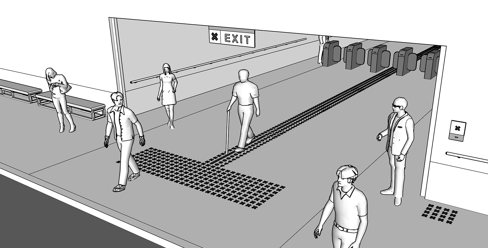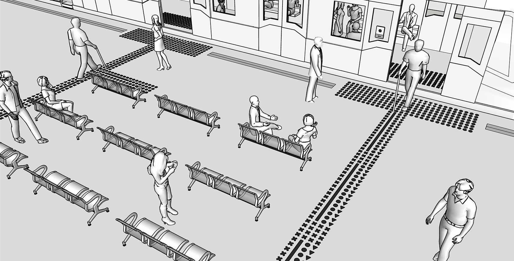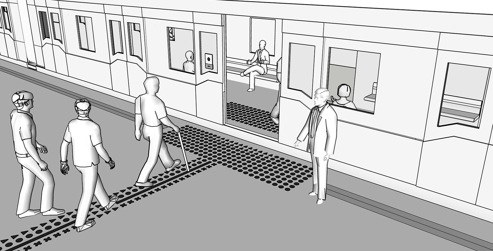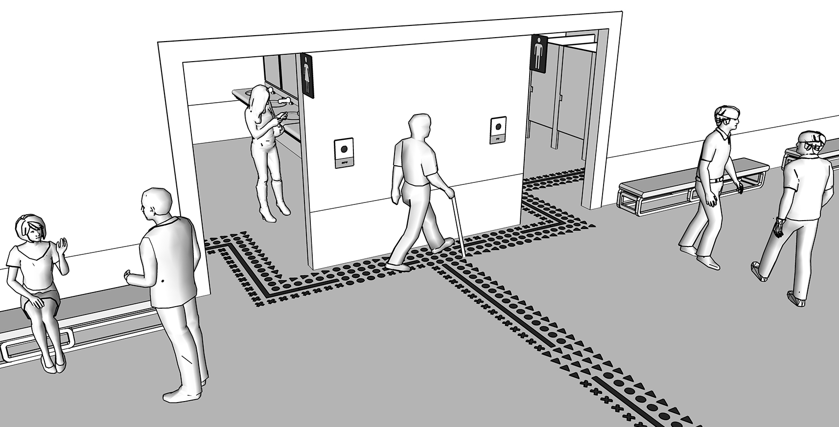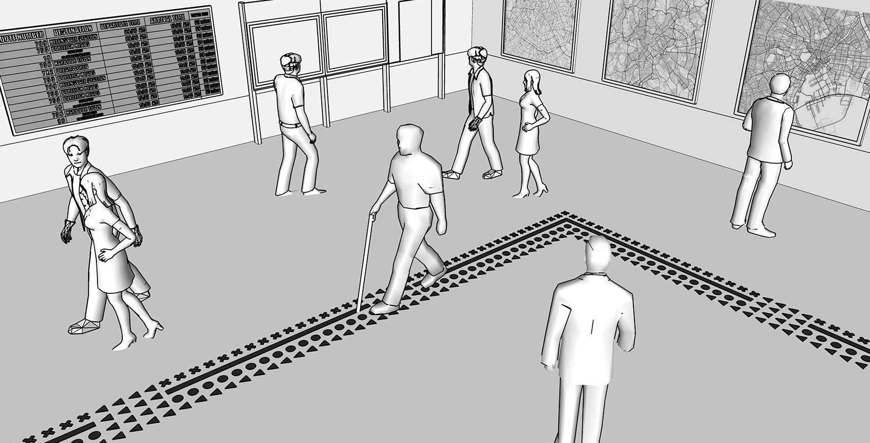 Tactogram is designed based on the hierarchy of information needs by the visually impaired that are represented in geometry while they are in public spaces. The forms are read schematically through a shape discrimination technique and understood semantically.
